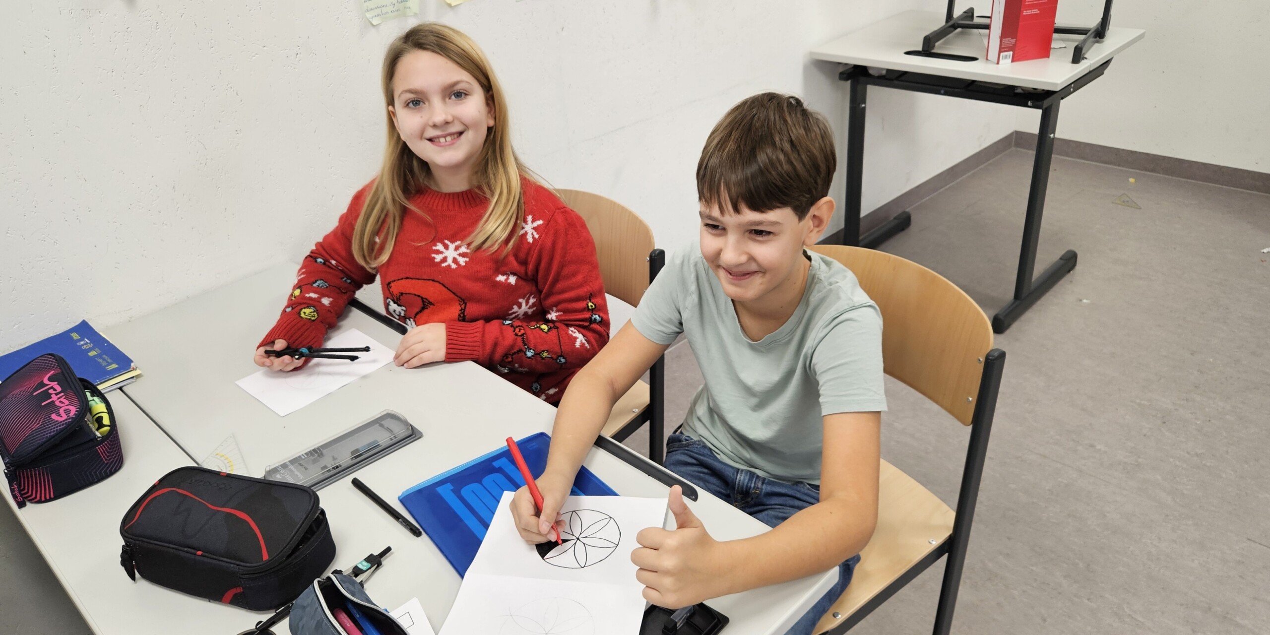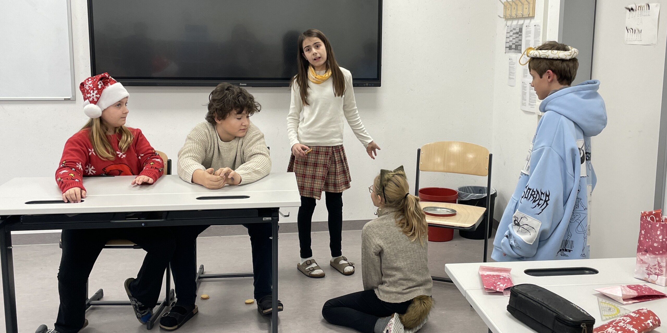 Weihnachtliche Szenen im Klassenzimmer